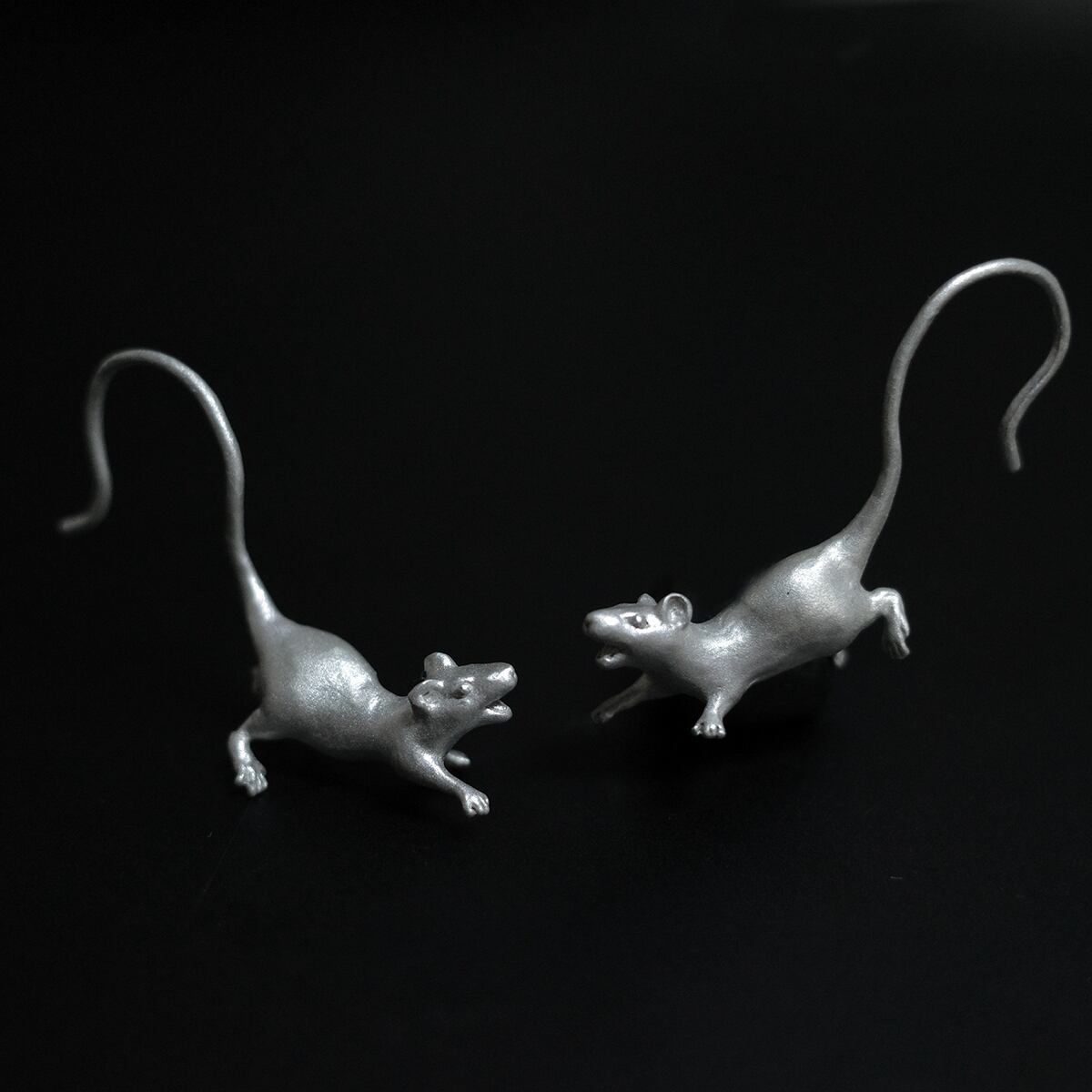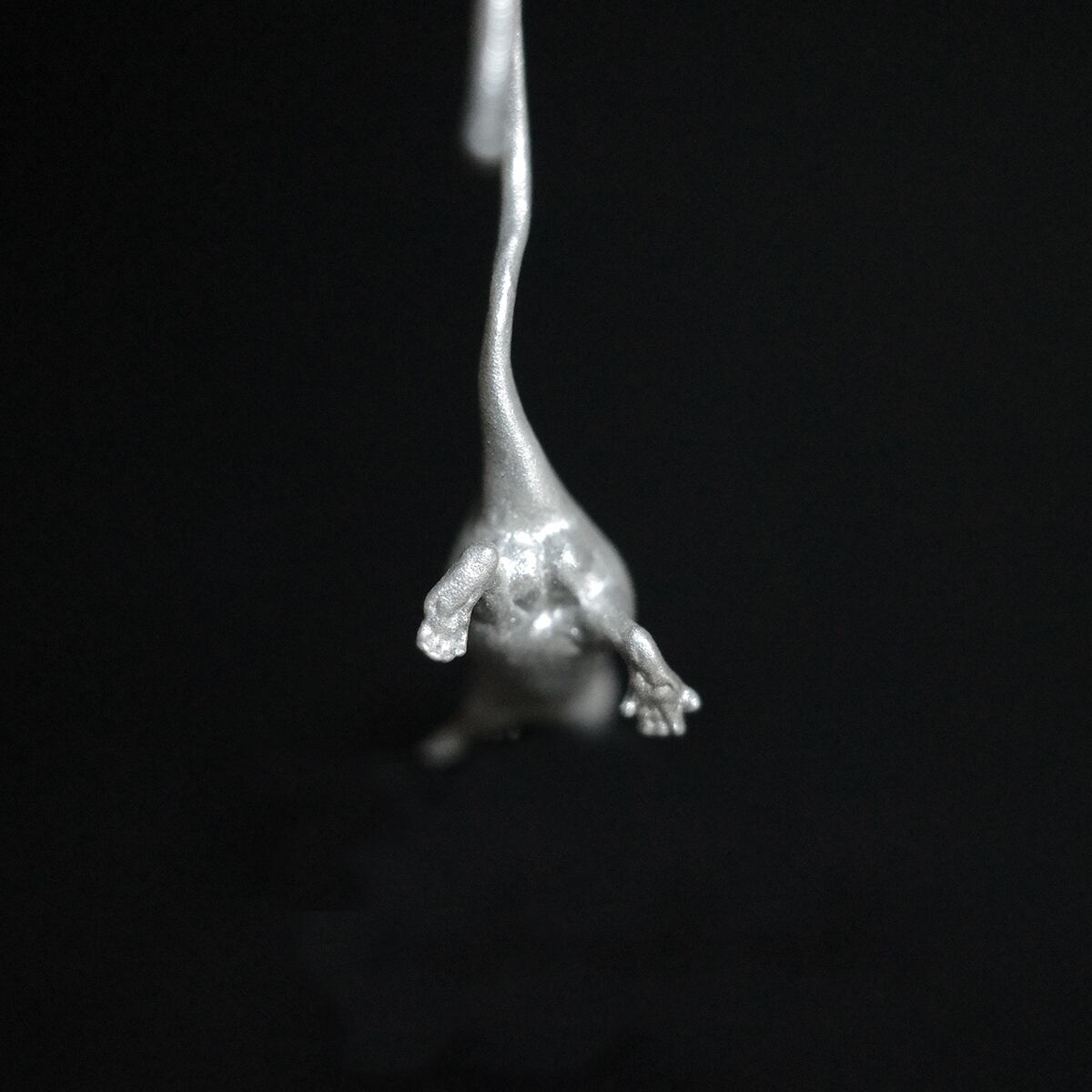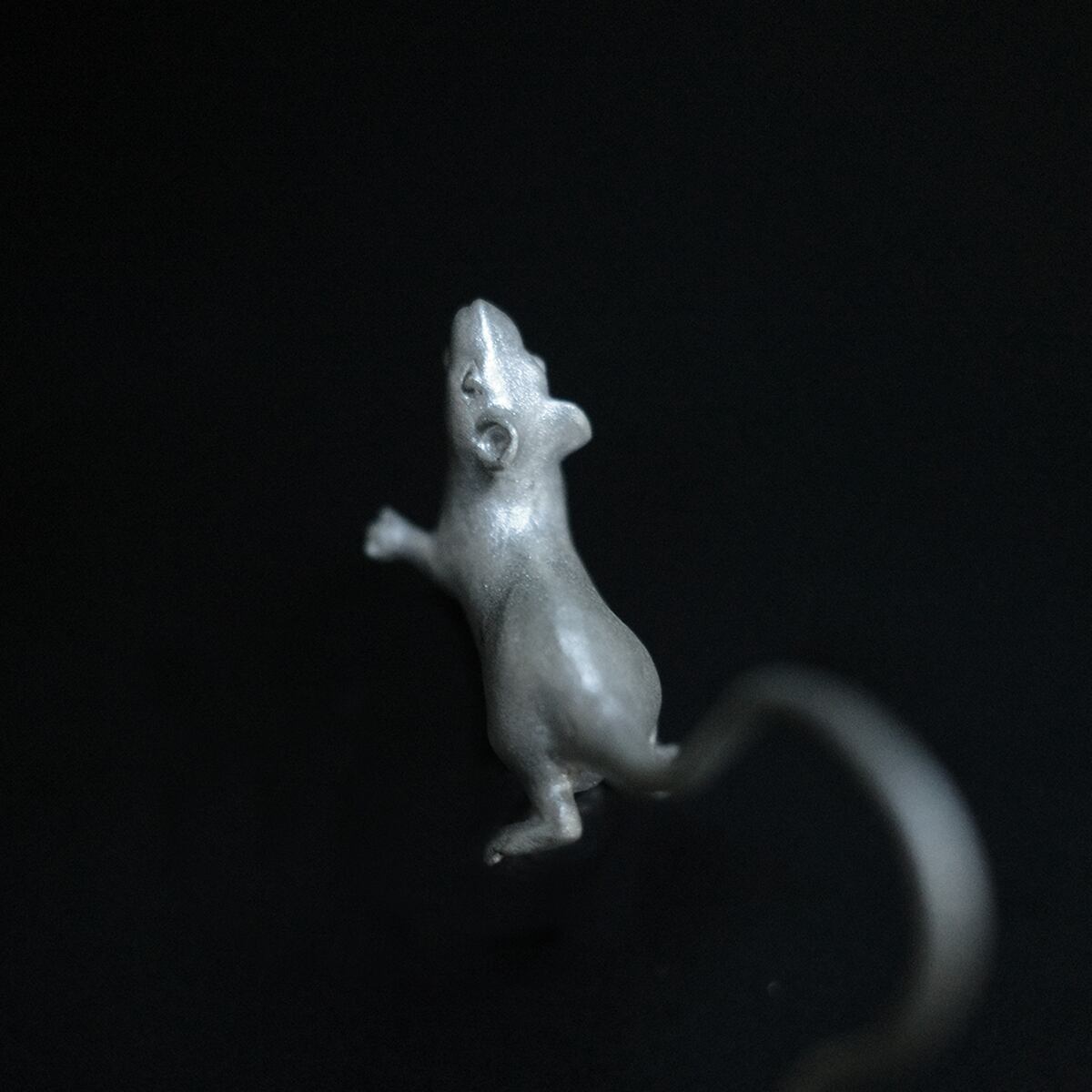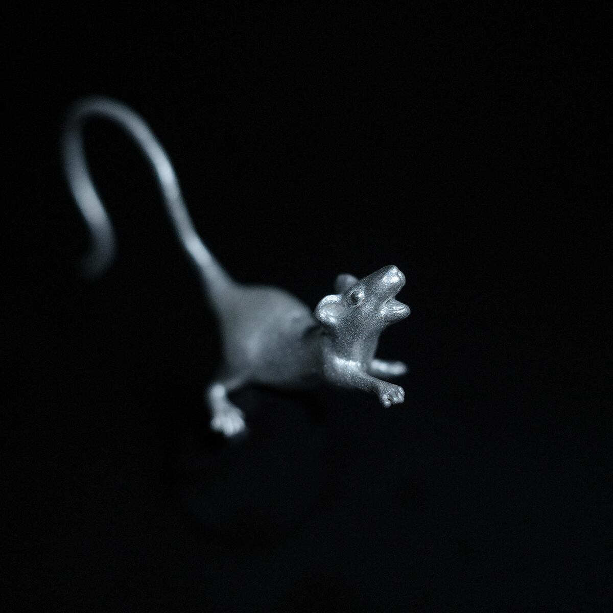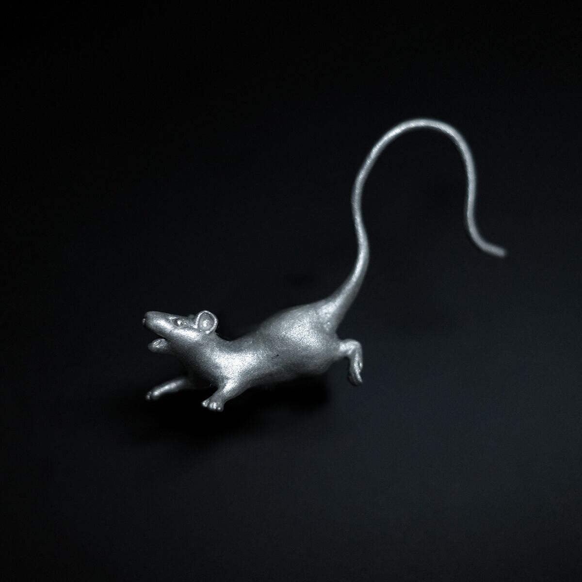 表面をマットにする加工をねずみにのみ当て、ねずみの柔らかさを表現しています。