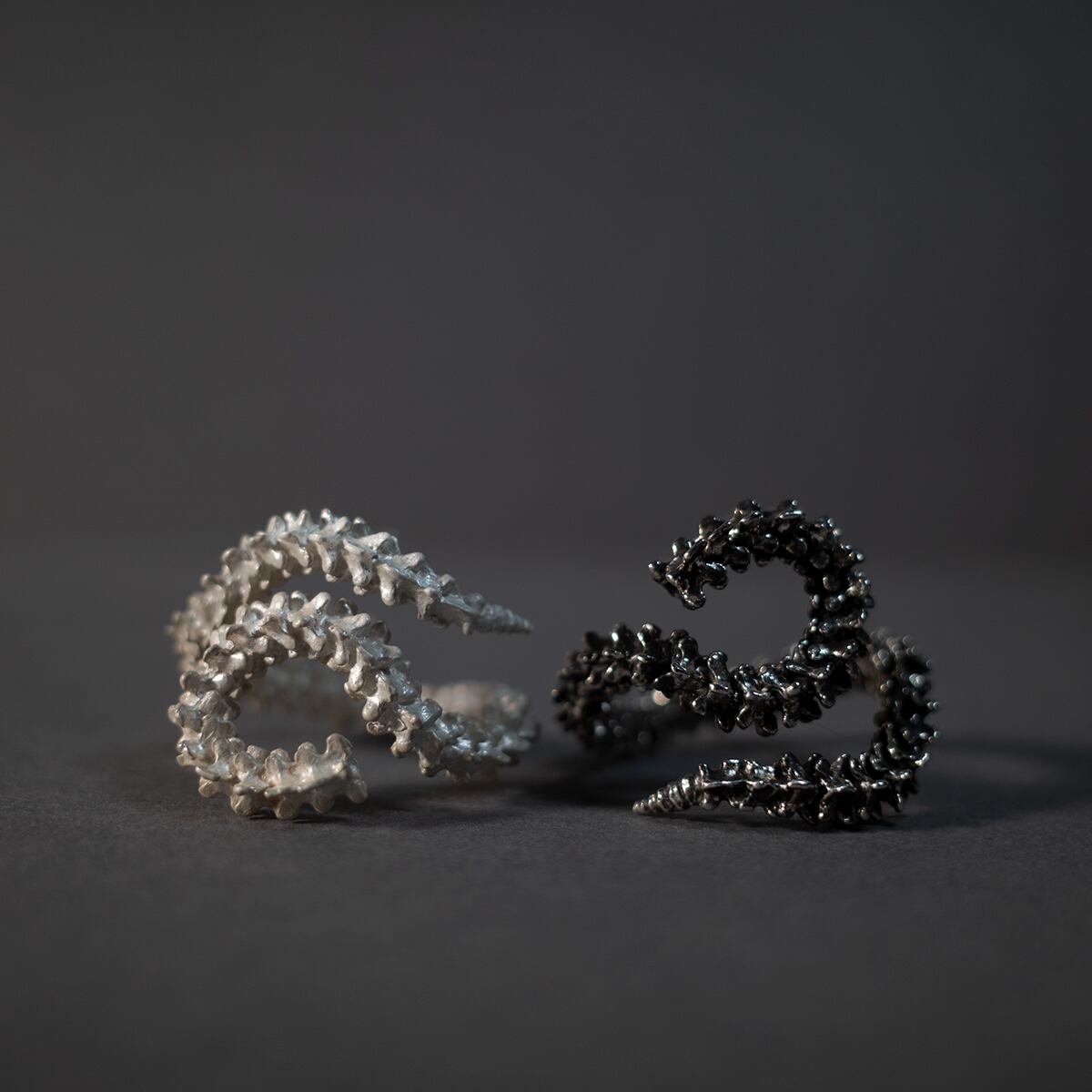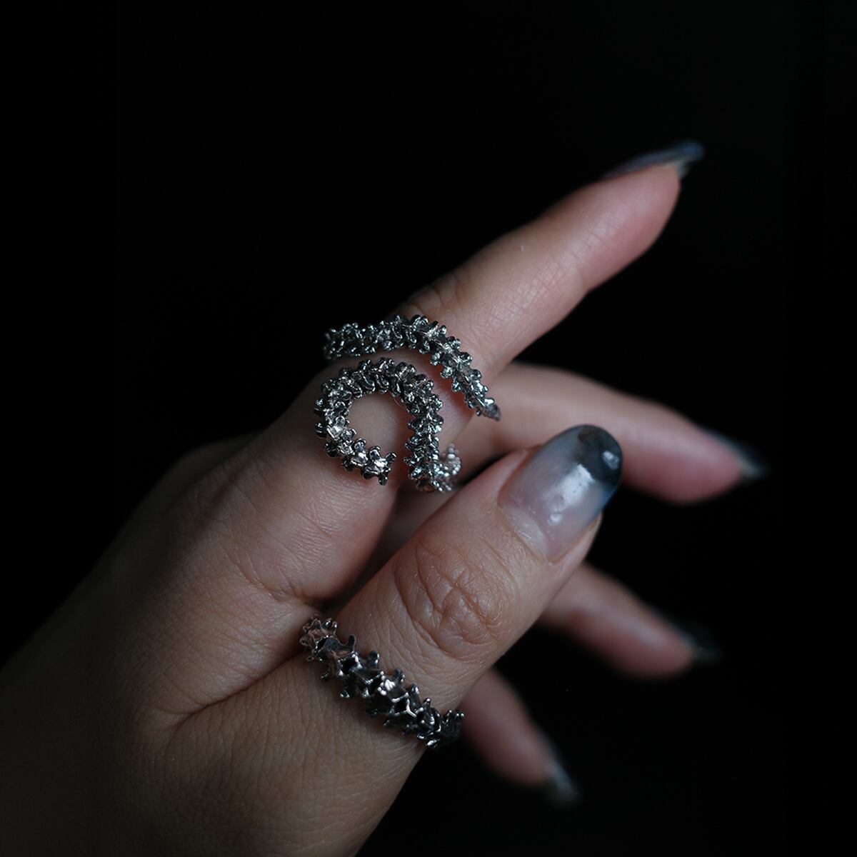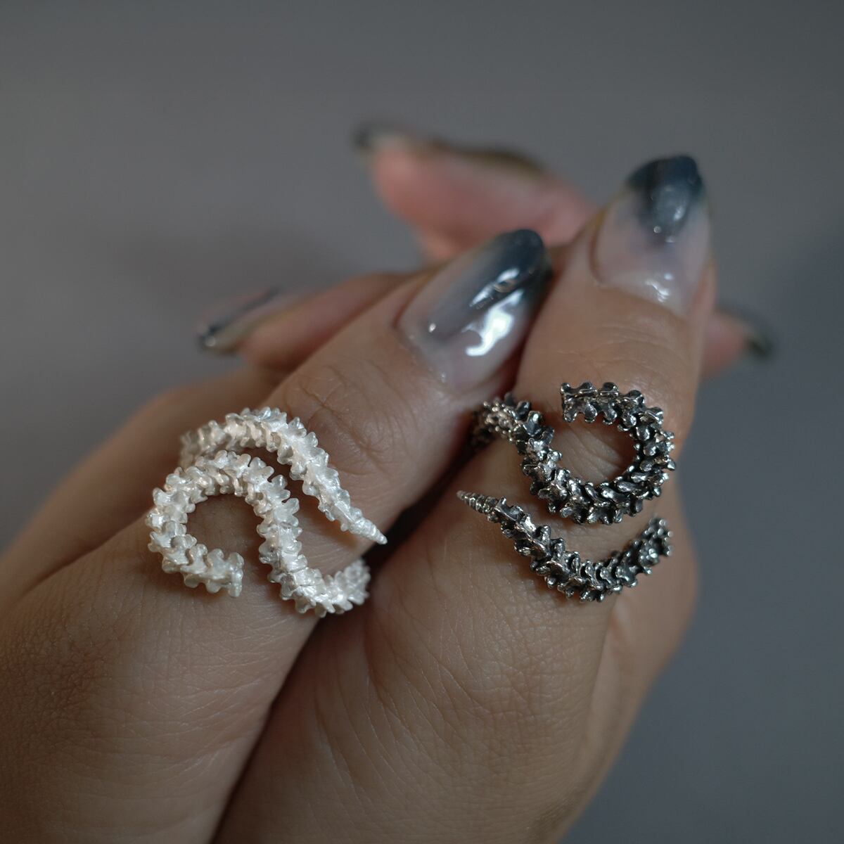 蛇の背骨が螺旋状に詰みあがったリングです。
