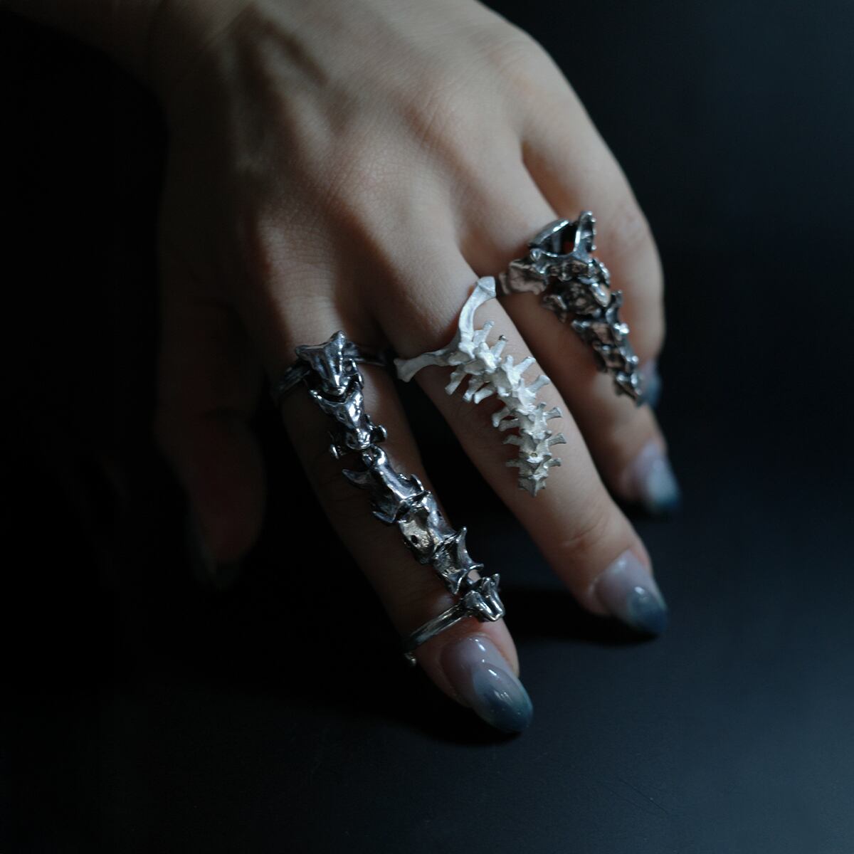 カラスの頸椎がモチーフのリング。